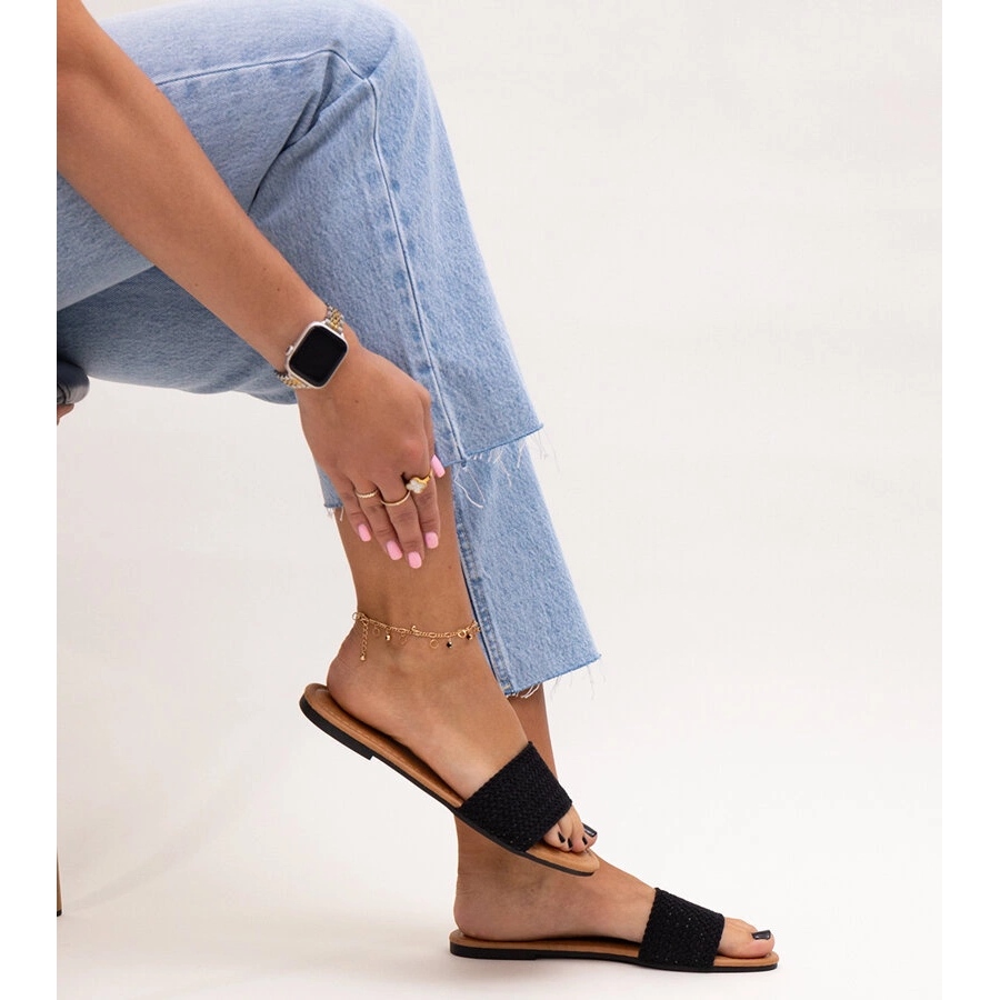 Details: Schwarze, bestickte Marika-Slides