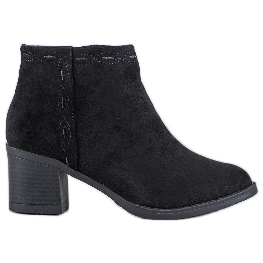 Wir präsentieren die schwarzen Stiefeletten Kylie mit hohem Absatz – eine perfekte Wahl für jede Frau, die stilvoll aussehen möchte, ohne auf Komfort zu verzichten. Diese eleganten Stiefeletten in klassischem Schwarz sind aus ökologischem Wildleder höchster Qualität gefertigt, was sie nicht nur modisch, sondern auch umweltfreundlich macht.