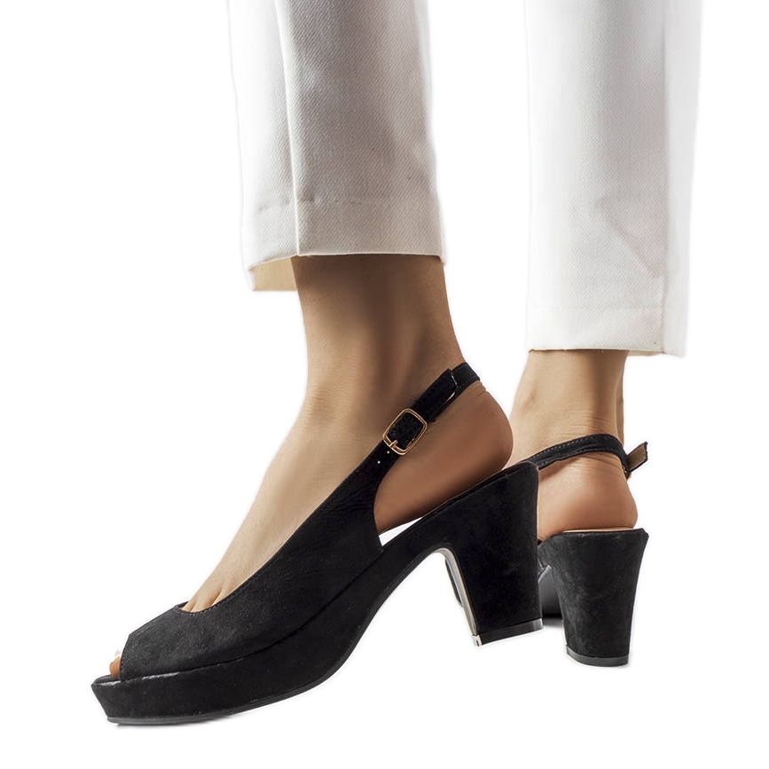 Schwarze Sandalen auf dem Dionne Post kombinieren eine klassische Form mit modernen Minimalismus. Hergestellt aus ökologischem Wildleder und Öko -Leder, mit einem komfortablen ökologischen Ledereinsatz und einer haltbaren Plastiksohle. Die 7 -cm -Highferse bietet einen bestimmten Schritt, und die einstellbare Schnalle ermöglicht eine perfekte Passform.