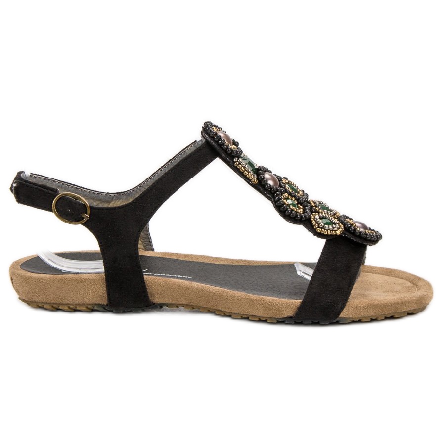 Schwarze Verzierungen, darunter Strasssteine, verleihen den Sandalen einen dezenten Glanz und durch die gedämpften Farben passen sie zu verschiedenen Stilen – sowohl lässig als auch eleganter. Aus ökologischem Wildleder gefertigt, sind sie nicht nur umweltfreundlich, sondern auch äußerst stylisch.