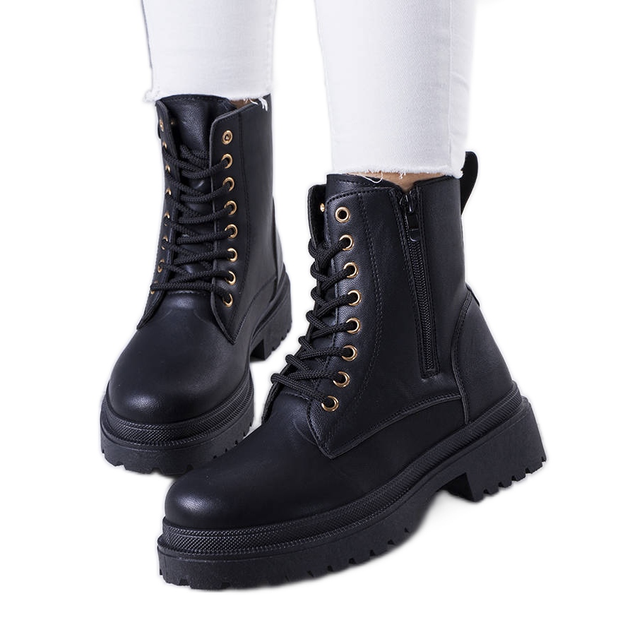 Das ALI -Modell ist einer der heißesten Trends der Saison - eine hohe, massive Sohle und eine modische Post -Form eines effektiven, modernen Looks. Stiefel bestehen aus hochwertigem ökologischem Leder mit einer Gummi -Sohle, die einen guten Griff gewährleistet. Der mit Stoff gepolsterte Innenraum garantiert den Komfort des Tragens, und ein praktischer Reißverschluss erleichtert das Einsetzen. Eine klassische, runde Nase und eine glatte, schwarze Oberfläche machen das Modell universell und leicht zu stilisieren.