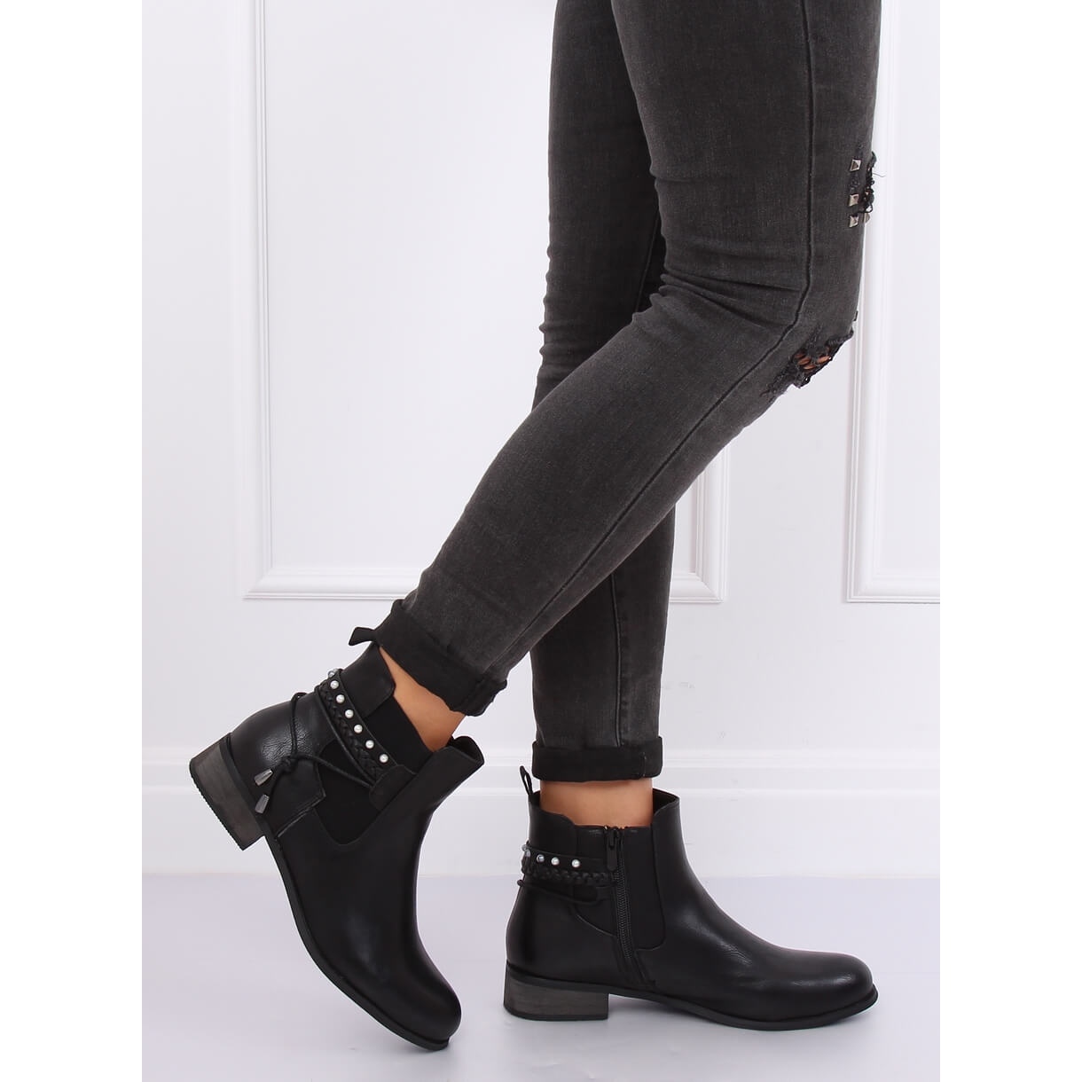 Charakteristische elastische Einsätze und Strasssteine verleihen ihnen einen einzigartigen Charme und machen sie zu einem perfekten Element des alltäglichen Stylings. Das Modell 846 Black mit Mandelspitze sieht nicht nur stylisch, sondern auch äußerst feminin aus. Dank des Reißverschlusses an der Seite des Obermaterials gelingt das An- und Ausziehen der Schuhe schnell und einfach.
