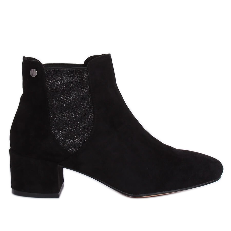 Details: Schwarze Chelsea-Boots mit breiten Absätzen B-6858 Schwarz