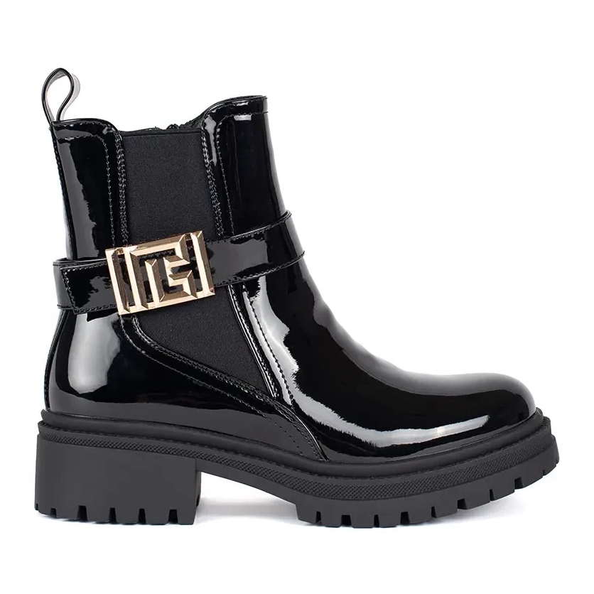 - Modell: Schwarze Chelsea-Stiefel aus Lack für Damen