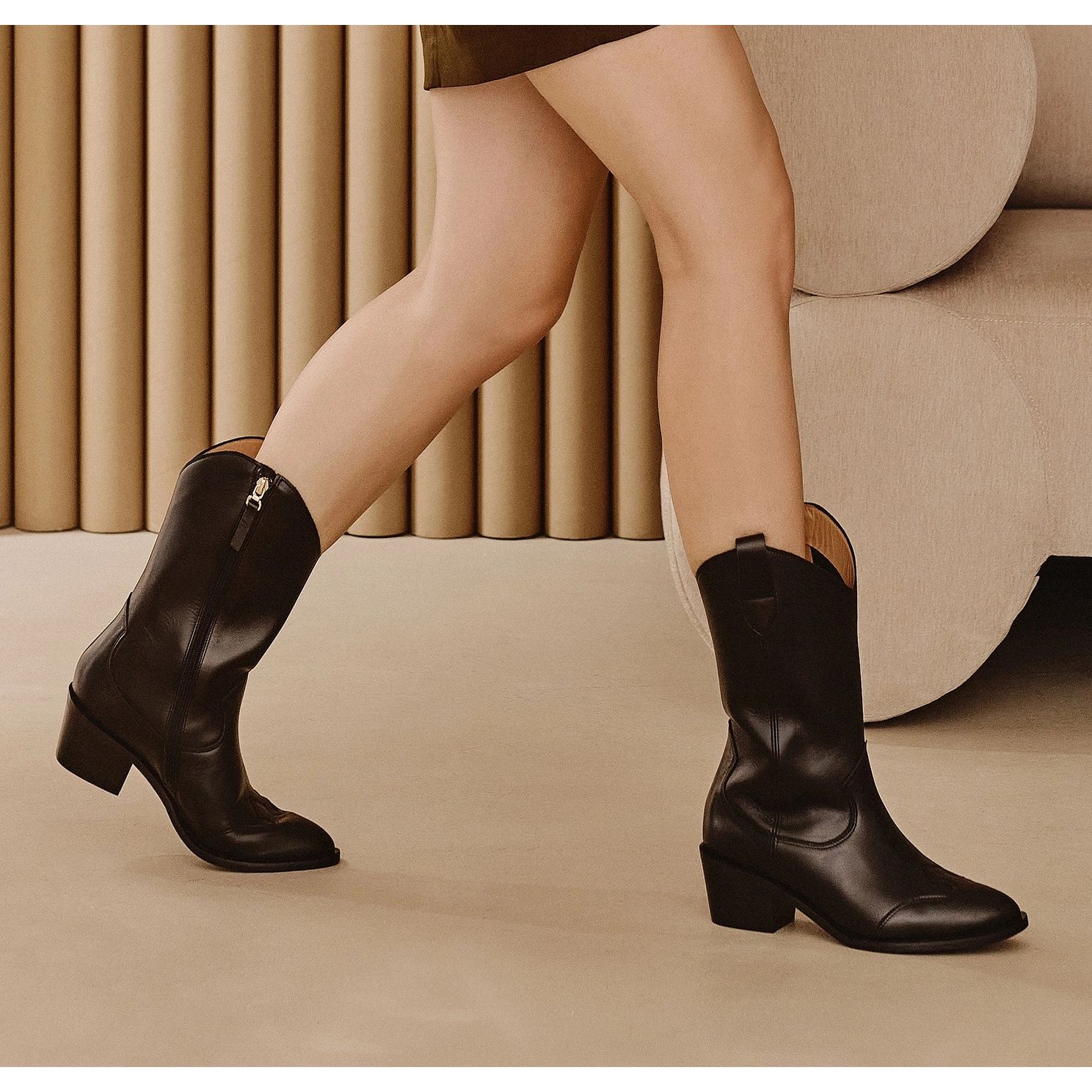 Marco Shoes - Black Cowboy -Stiefel aus natürlichen Leder sind eine Kombination aus einem klassischen westlichen Stil mit urbanem Komfort. Sie bestehen aus natürlichen Getreideleder mit einem eleganten, glatten Finish und arbeiten sowohl in alltäglichen als auch in stilvolleren Kombinationen. Ein stabiler Block (4,5 cm) und eine abgerundete Nase sorgen im Laufe des Tages.