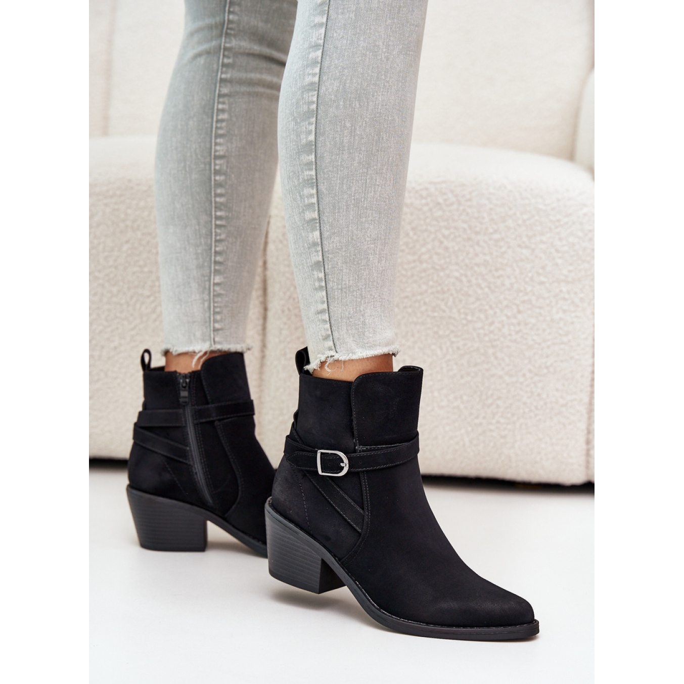 Entdecken Sie den einzigartigen Stil und die Bequemlichkeit mit schwarzen Cowboy -Stiefeln mit schwarzen Hochern. Diese eleganten, schwarzen Stiefel bestehen aus hochwertigem Öko -Wildleder, was sie nicht nur modisch, sondern auch zu einer ökologischen Wahl macht. Sie setzen auf eine stabile Ferse in Form eines 6 -cm hohen Pfostens, betonen die Figur perfekt und bieten gleichzeitig beim Tragen Komfort.