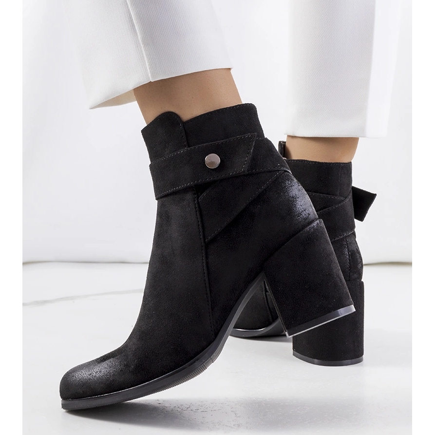 Schwarze Craydon -Stiefel - stilvoll und komfortabel für kühlere Tage. Der asymmetrische Obere erreicht den Knöchel, der vorne leicht verlängert wird, einen modischen Akzent in alltäglichen Stilisationen. Sie bestehen aus Ekozamsz mit einer zarten Erwärmung (Schuhedecke) und bieten Komfort und Schutz vor Kälte. Der dekorative Streifen von Eco -Leder am Knöchel mit Nachahmung eines Silberriegels fügt Charakter hinzu, und das praktische Reißverschluss erleichtert das Einfügen. Ein stabiler Kolben mit einer Höhe von 7,5 cm modelliert die Figur, ohne den Komfort aufzugeben.