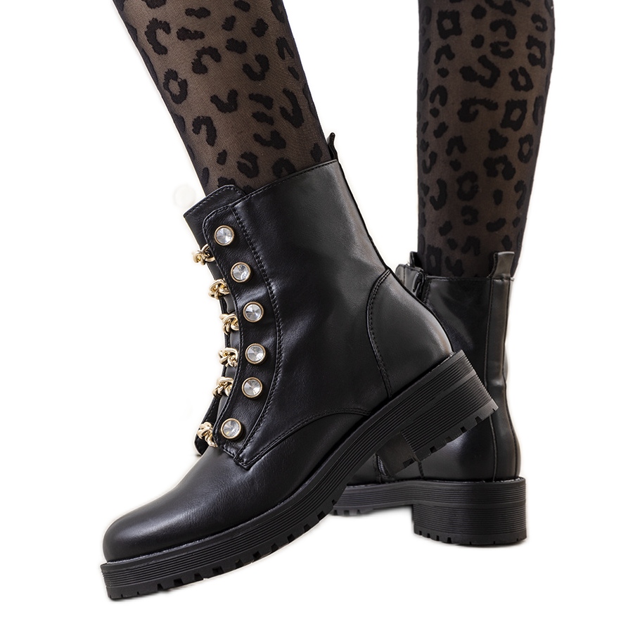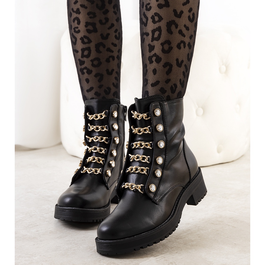 Entdecken Sie das neueste Modell der Curiel-Fallen der Marke PA1 – die perfekte Wahl für jede modebewusste Frau! Diese eleganten schwarzen Stiefel vereinen Stil und Komfort, was sie zu einem unverzichtbaren Bestandteil Ihrer Herbstgarderobe macht. Eine Goldkette imitiert Spitzen und dezente Strasssteine verleihen ihnen einen einzigartigen Charakter, der mit Sicherheit die Aufmerksamkeit auf sich ziehen wird.