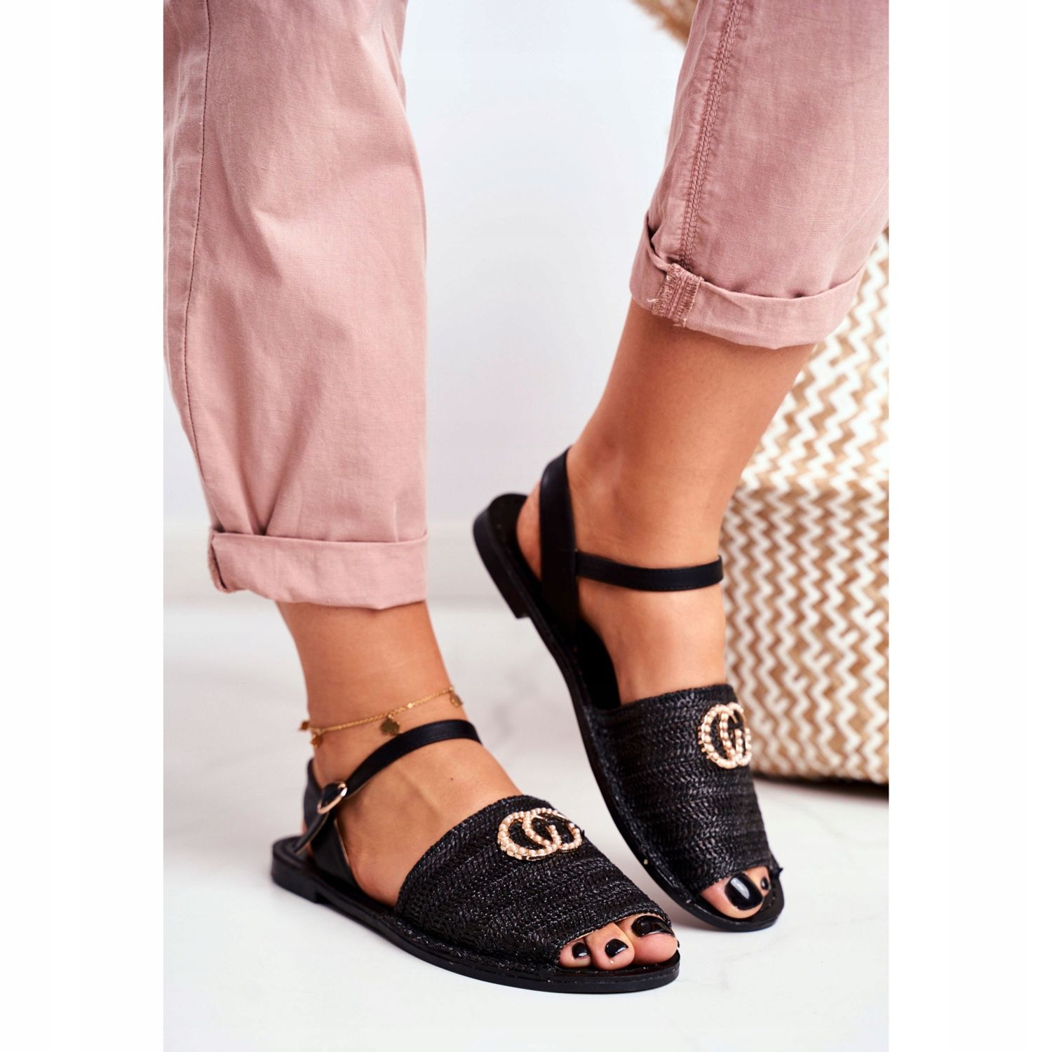 Details: Schwarze Damen Flache Sandalen Lu Boo Geflochtene Felicia