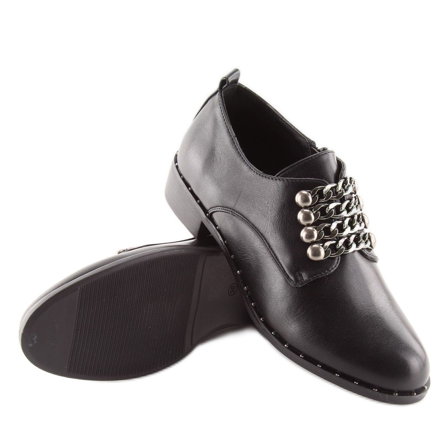 Die schwarzen Damenmokassins C-7160 Black sind eine ausgezeichnete Wahl für Frauen, die klassischen Stil mit einem modischen Akzent kombinieren möchten. Diese Schuhe zeichnen sich durch einen eleganten, aber einzigartigen Stil aus, der die Blicke auf sich zieht. Die dekorative Schnürung in Form einer Kette verleiht Originalität und der mit winzigen Nieten besetzte Besatz verleiht dem klassischen Design etwas Verrücktheit.