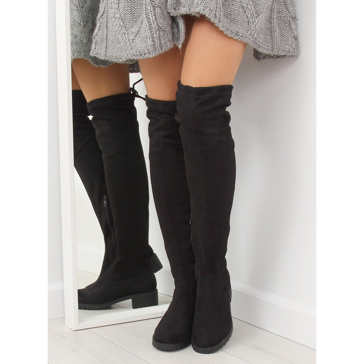 Inna marka Schwarze Damen-Oberschenkelstiefel NS013 Schwarz
