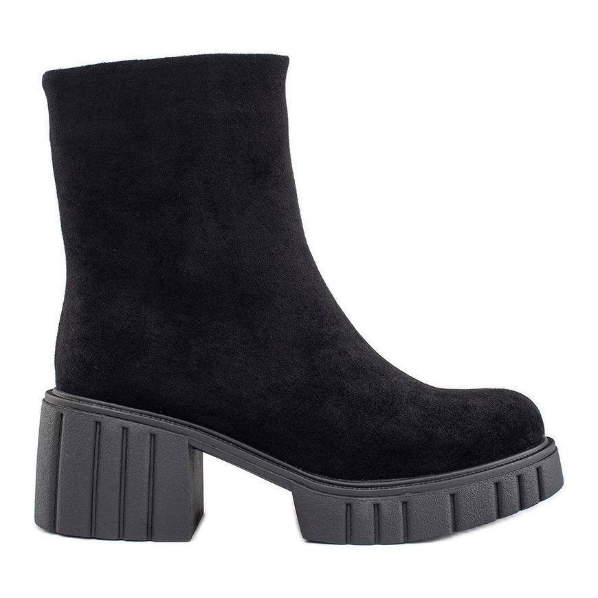 Wir präsentieren schwarze Frauenstiefel auf der Plattform des Herstellers einer anderen Marke, die perfekt in den ungezwungenen Stil passt und in alltäglichen Kombinationen arbeiten. Diese Stiefel aus ökologischem Wildleder und mit Textilmaterial bieten nicht nur ein ästhetisches Erscheinungsbild, sondern auch den Komfort, den ganzen Tag zu tragen.