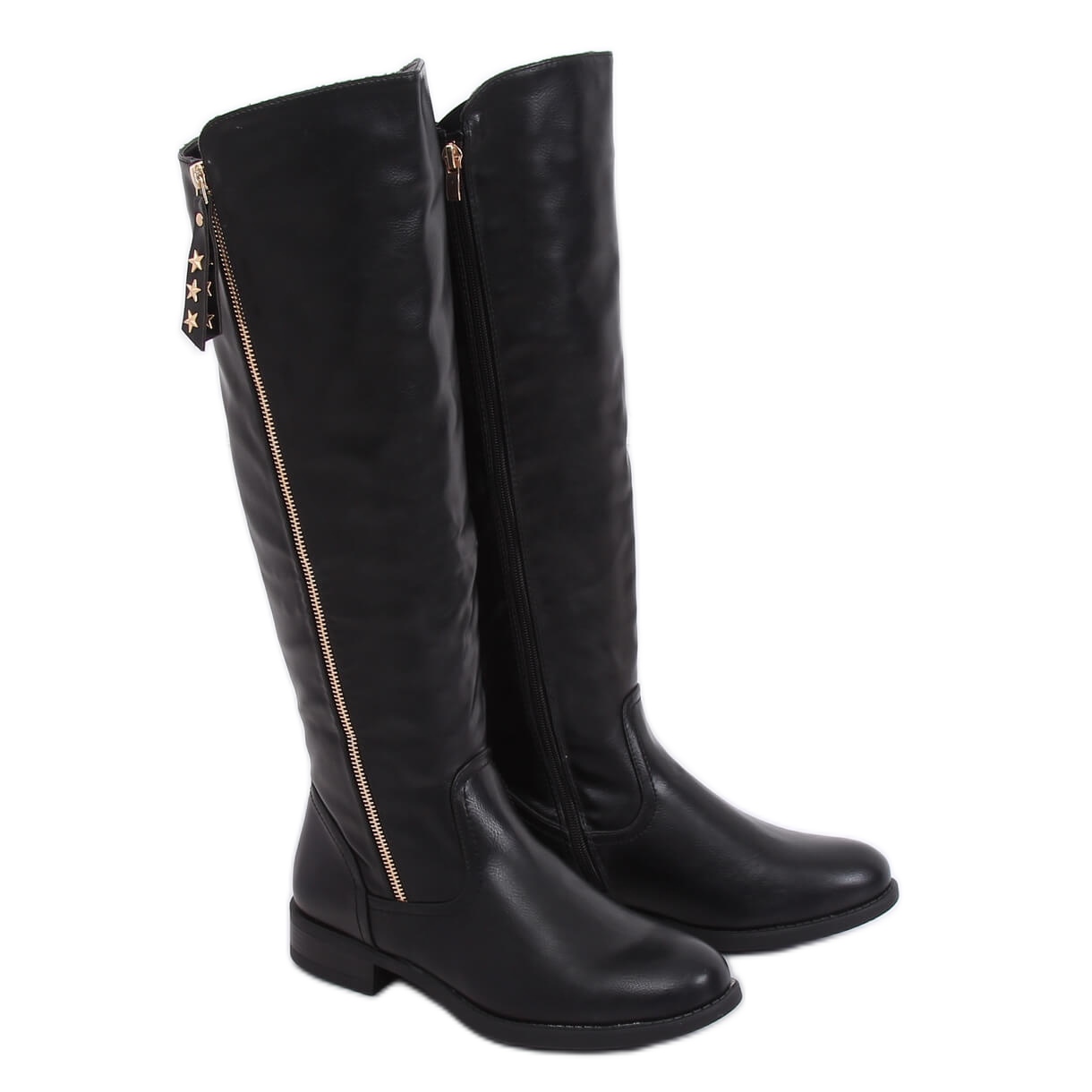 Die schwarzen Damenstiefel MR-6 Black sind die perfekte Wahl für alle Frauen, die Wert auf einen modischen und bequemen Stil legen. Diese eleganten Stiefel mit flachem Absatz begeistern mit einem sorgfältig gestalteten Obermaterial, das sich durch einen dekorativen goldenen Reißverschluss und einen Sternanhänger auszeichnet und ihnen einen einzigartigen Charakter verleiht.