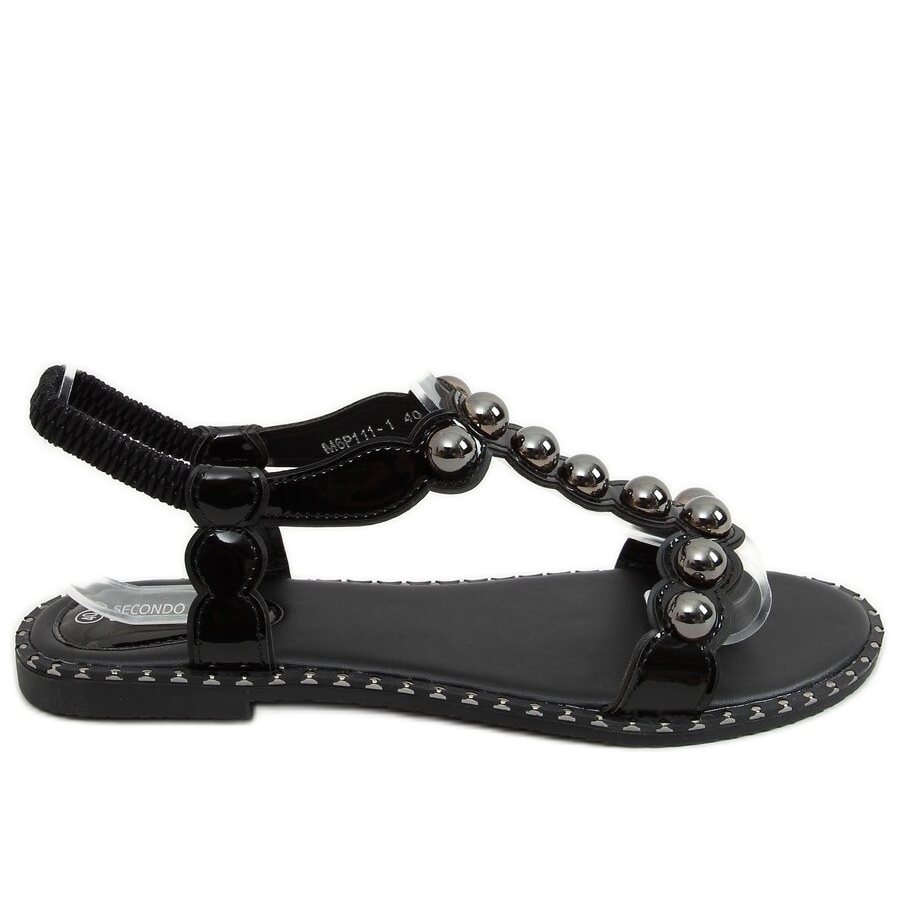 Entdecken Sie Eleganz und Komfort mit den schwarzen Damensandalen M6P111-1 Black! Diese einzigartigen flachen Sandalen sind eine perfekte Kombination aus Stil und Komfort, die gut zu jedem Alltags-Styling passt. Ihr extravagantes Design mit lackierter Oberfläche und glänzenden Kugeln zieht alle Blicke auf sich und Sie werden garantiert überall einen beeindruckenden Eindruck hinterlassen.