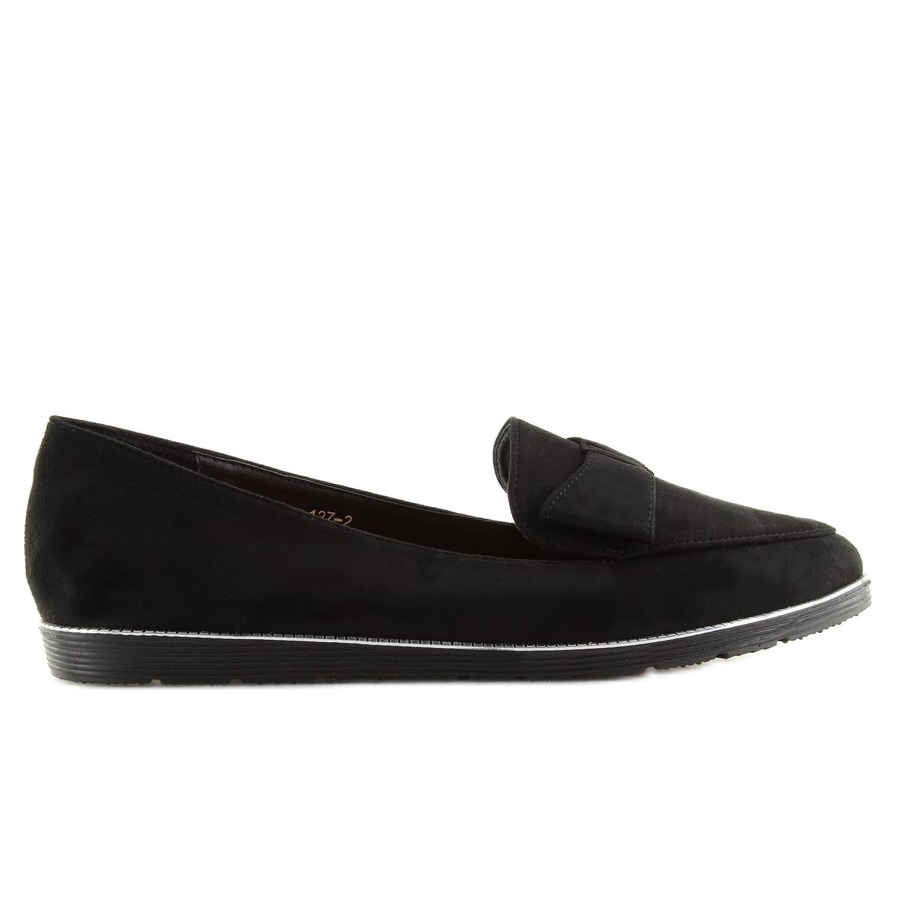 Entdecken Sie Eleganz und Komfort mit den schwarzen Damenmokassins 127-2 schwarz! Diese stilvollen Schuhe mit einer schönen Schleife und silbernen Paspeln entlang der Sohle unterstreichen mit Sicherheit Ihren individuellen Stil und passen zu jedem Alltags-Styling.