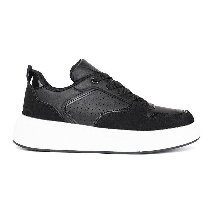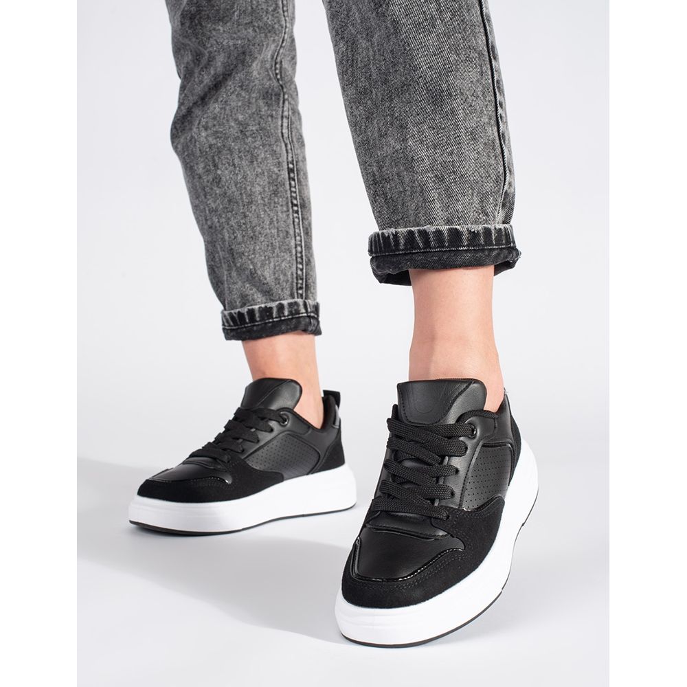 Diese schwarzen Turnschuhe aus hochwertigem ökologischem Leder und Stoffen ausstrahlen und ausstrahlen den modernen Stil. Eine runde Nase und ein geschnürter Klasze betonen ihren Sport und ihren modischen Charakter, was es leicht macht, mit verschiedenen Elementen der Garderobe zu kombinieren. Sie können sie problemlos mit Jeans, Sport -Leggings oder einem lässigen Kleid kombinieren und jeden Tag originelle Stilisierungen erstellen.