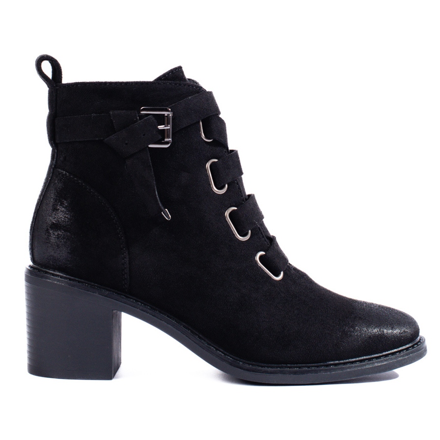 Klassisch und gleichzeitig mit krallenschwarzer Stiefeln auf dem Posten ist ein Muss für die Herbst/Winter-Saison. Sie bestehen aus weichem ökologischem Wildleder mit Isolierung und "Schuhedecke" und bieten thermischen Komfort während kühlerer Tage. Ein stabiler 6 cm hoher Pfosten fügt einen weiblichen Look hinzu, der Ihre Füße nicht ermüdet.