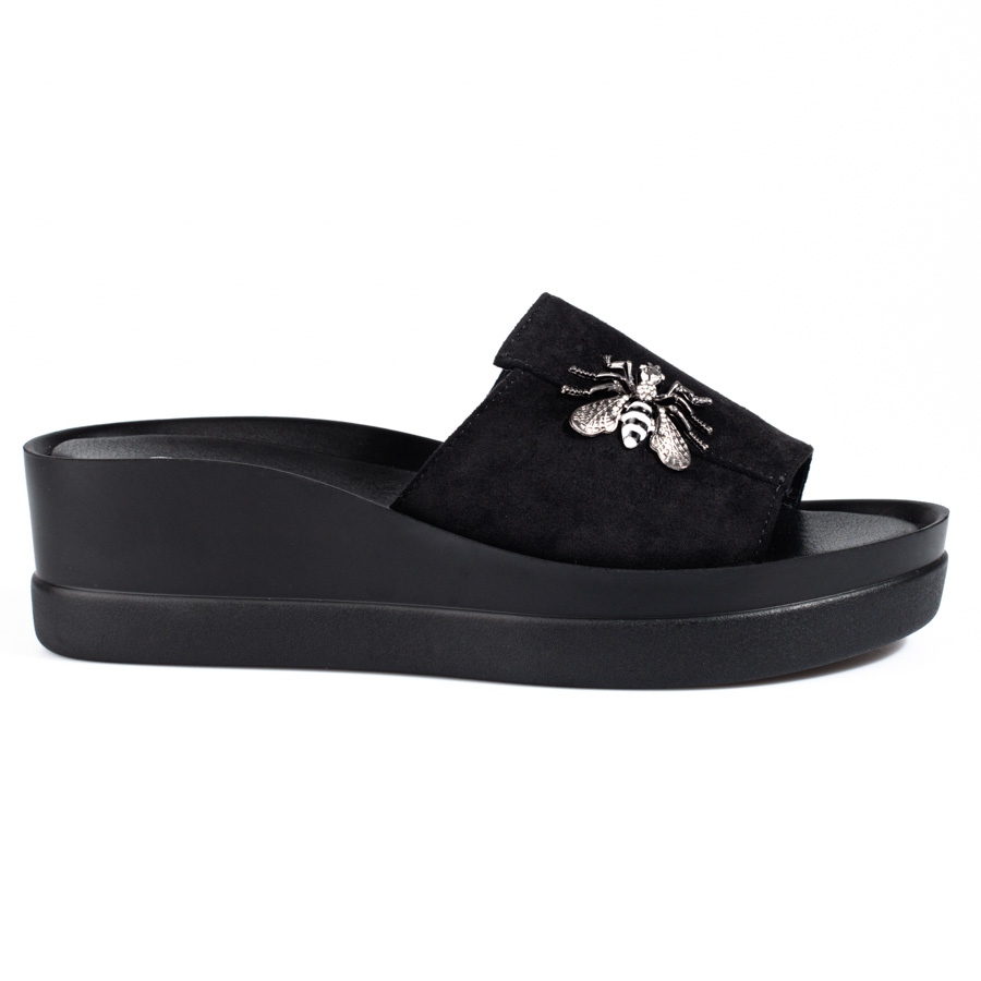 Details: Schwarze Damenhausschuhe auf einem bequemen Shelovet-Keilabsatz