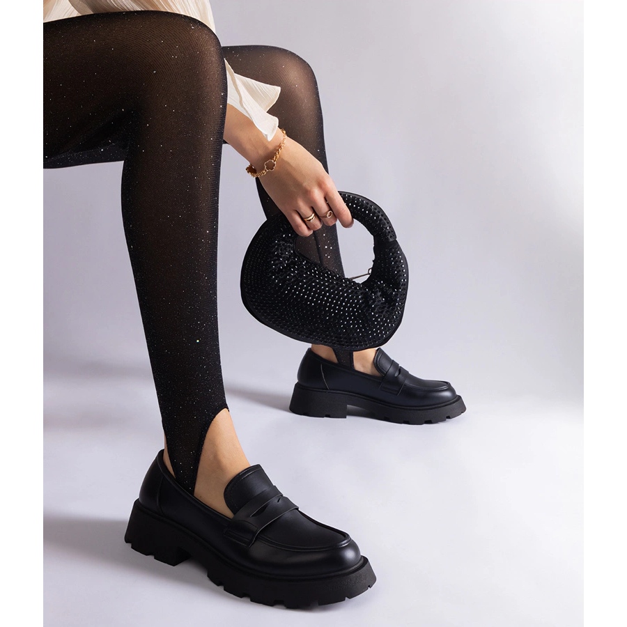Die Slipper bestehen aus hochwertigem Bio -Leder und unterscheiden sich durch eine klassische schwarze Farbe, die perfekt zu verschiedenen Stilisationen passt. Die runde Nase verleiht ihnen Feinheiten, während der eingefügte Verschluss das Anziehen und Entfernen von Schuhen schnell und komfortabel macht.