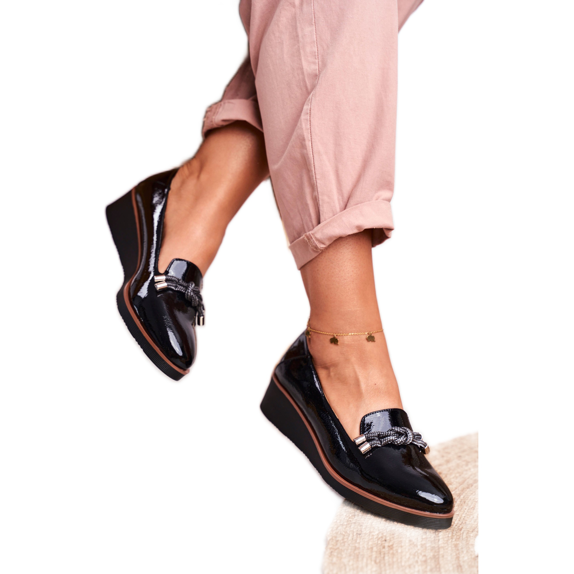 Vinceza Vinceza Schwarze Damenmokassins mit Lackierung auf dem Abba-Keil grau