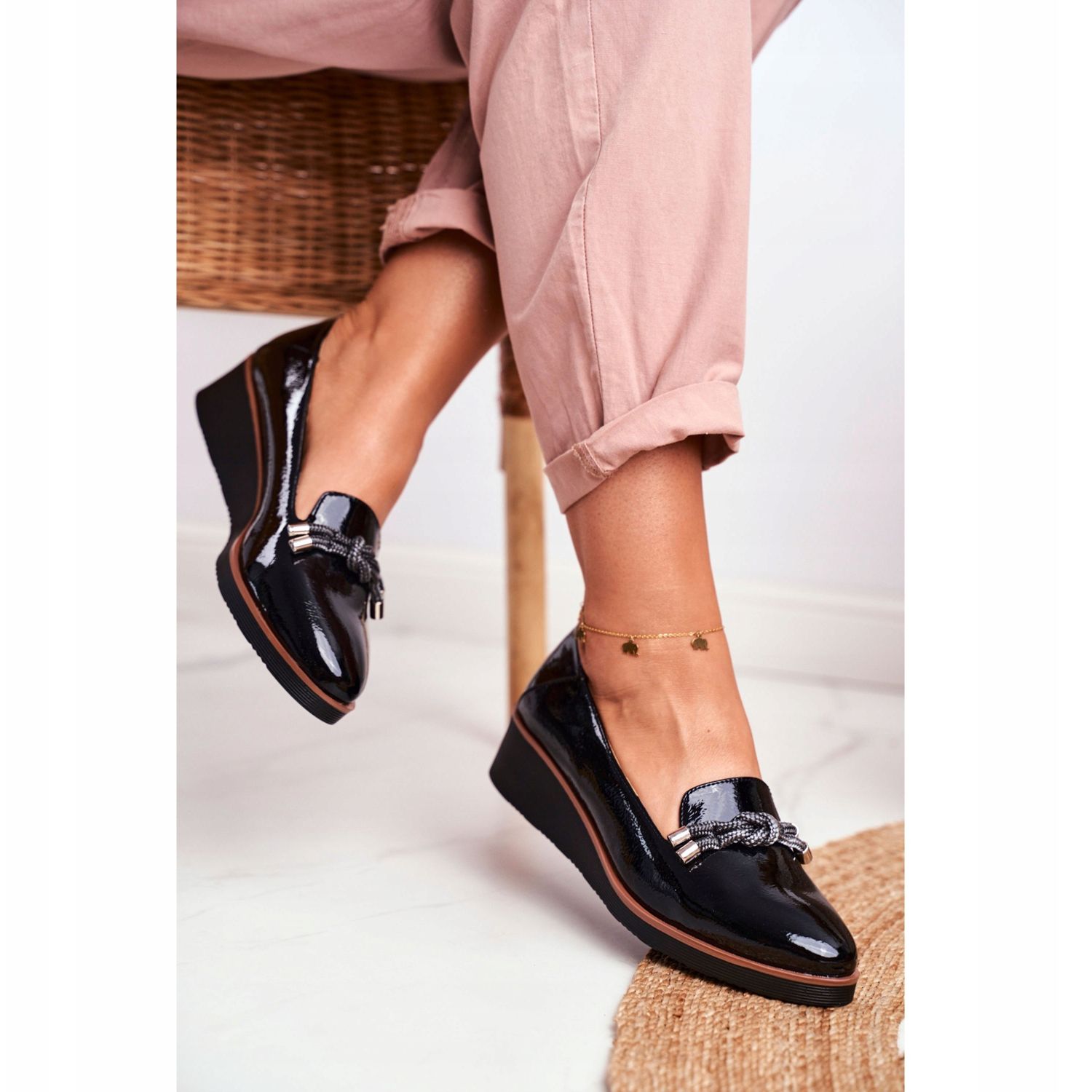 Details: Vinceza Schwarze Damenmokassins mit Lackierung auf dem Abba-Keil
