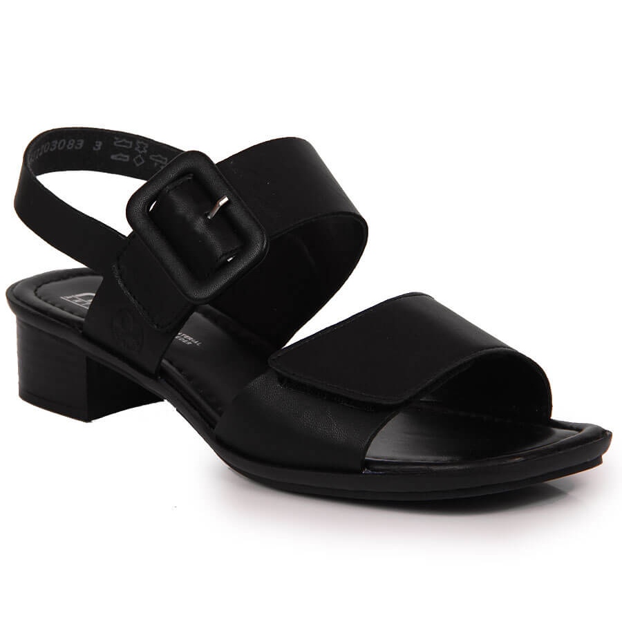 Details: Schwarze Damensandalen aus Leder Rieker 62663-01