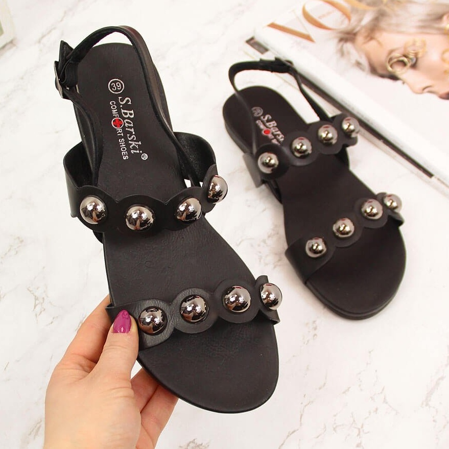 Details: S.Barski Schwarze Damensandalen mit Nieten von S. Barski