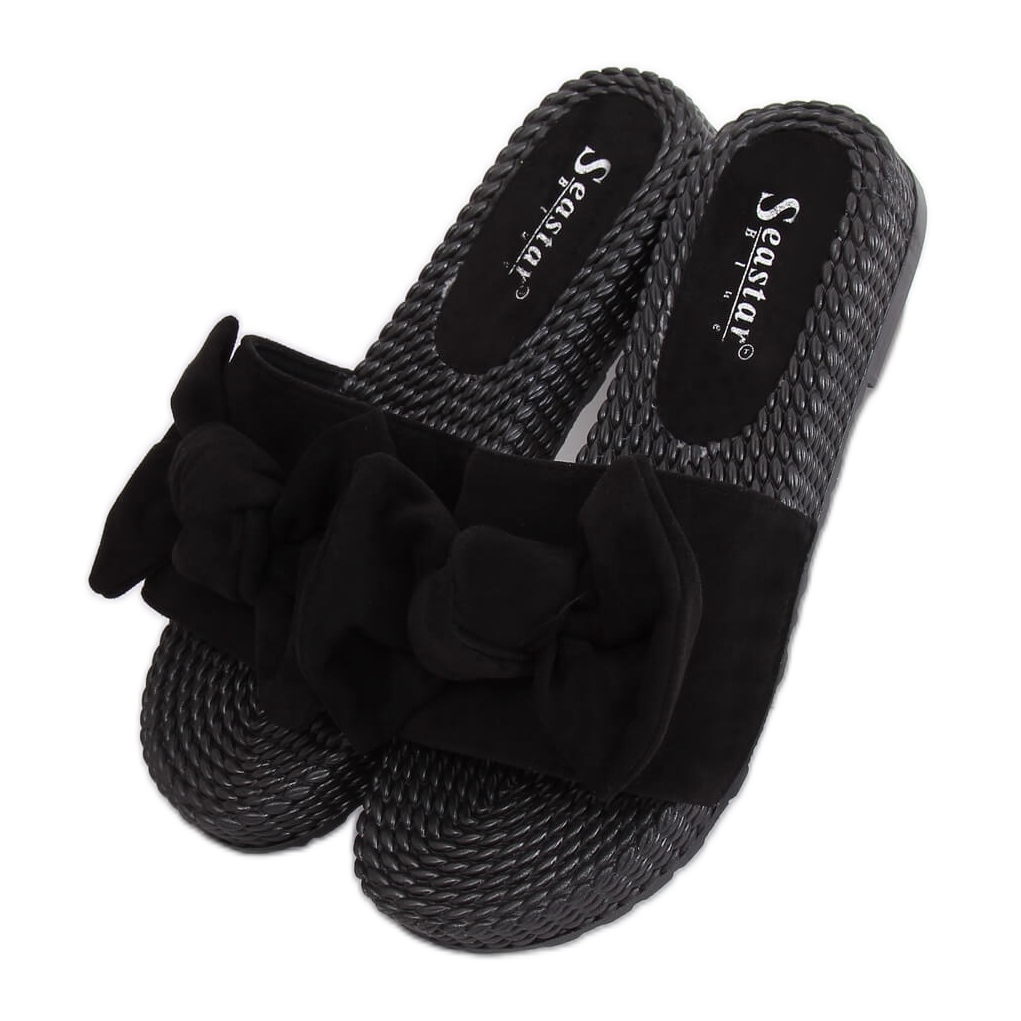 Inna marka Schwarze Damenhausschuhe mit Schleife YQ225P Schwarz