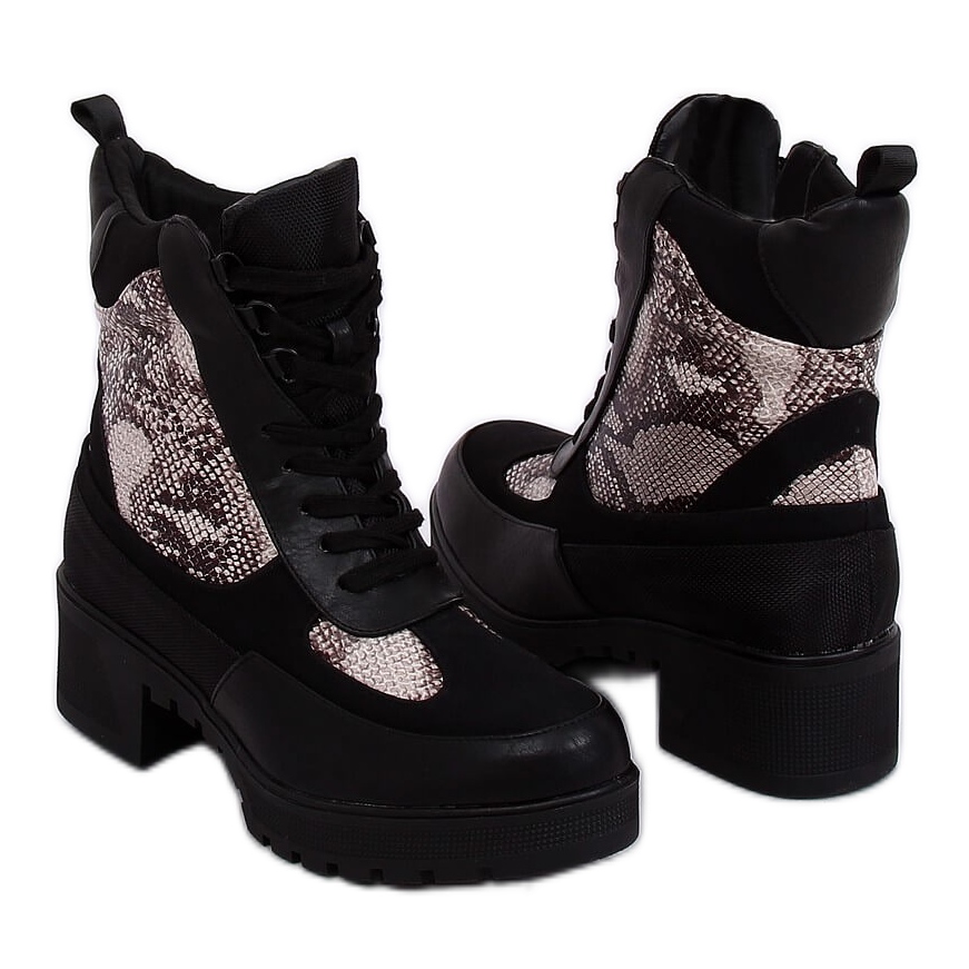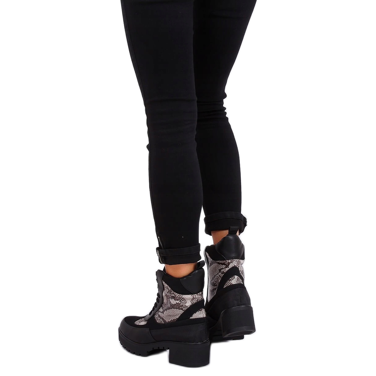 Entdecken Sie den neuesten Hit der Saison – schwarze Damen Stiefeletten 99-58 Snake Skin! Diese einzigartigen Schuhe wurden speziell für moderne Frauen entwickelt und vereinen Stil, Komfort und Zweckmäßigkeit. Sie bestehen aus hochwertigem Faux-Wildleder und sorgen durch den vollständigen Verschluss mit Schnürsenkeln für eine perfekte Passform am Fuß.
