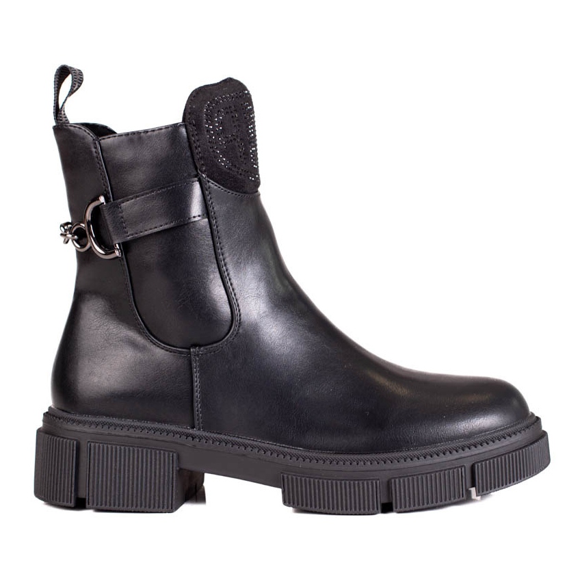 Elegante, schwarze Frauenstiefel auf einer leichten Plattform, perfekt für die Herbst/Winter -Saison. Kombinieren Sie aus ökologischem Leder, mit einem isolierten Pelzeinsatz und einer Textilfutter modisches, ungezwungenes Design mit alltäglichen Funktionen. Delikate Dekorationen in Form von Zirkonen und einer Kette fügen Charakter hinzu, ohne die Universalität aufzugeben.