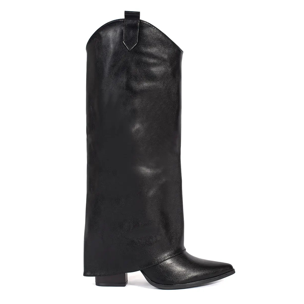 Entdecken Sie Eleganz und Stil und kombinieren Sie den Komfort mit einem Modeausdruck dank der Stiefel der schwarzen Frauen im Stil von Cowboy mit hohem Schnäppchen einer anderen Marke. Diese einzigartigen Schuhe sind ein ideales Angebot für die Herbst-Winter-Jahreszeit, die sowohl für jeden Tag als auch für die alltäglichen Stylisierungen perfekt ist.
