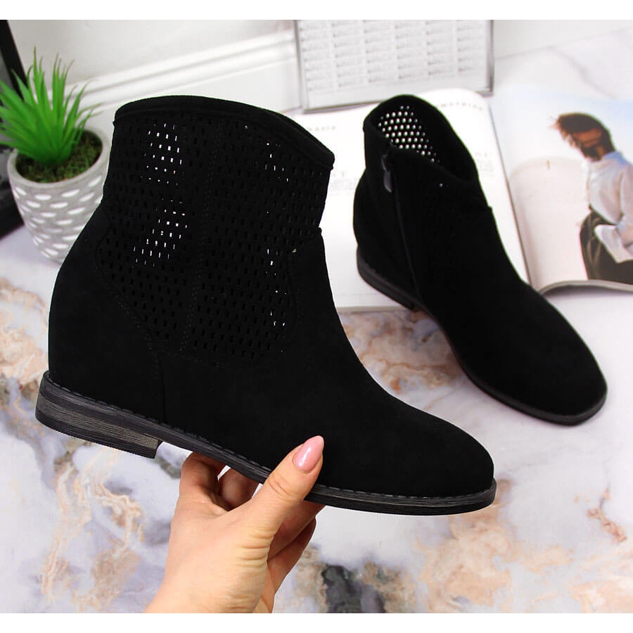 Details: S.Barski Schwarze Damenstiefel mit durchbrochenem Keilabsatz von S. Barski