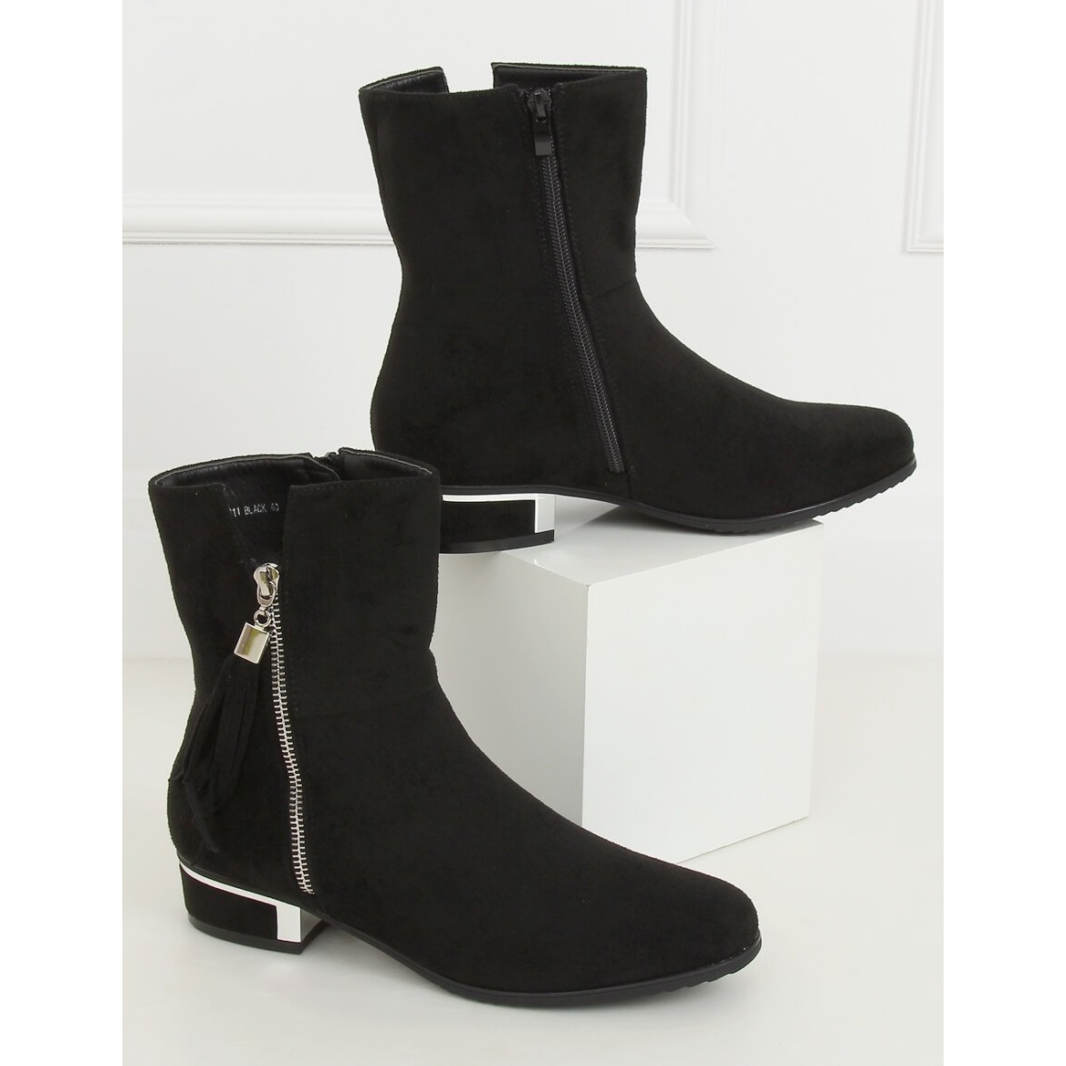 Inna marka Schwarze Damenstiefel mit flachem Absatz HFN-2311 Schwarz