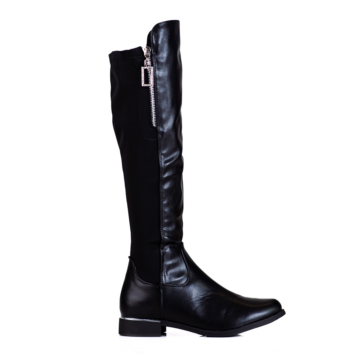 - Modell: Schwarze Stiefel mit flachen Shelovet-Absätzen