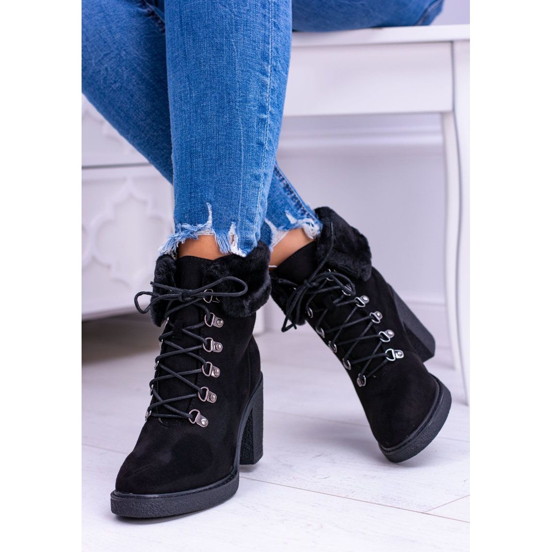 BUGO BUGO Schwarze Damenstiefel mit Pelz an der Ferse Einfluss