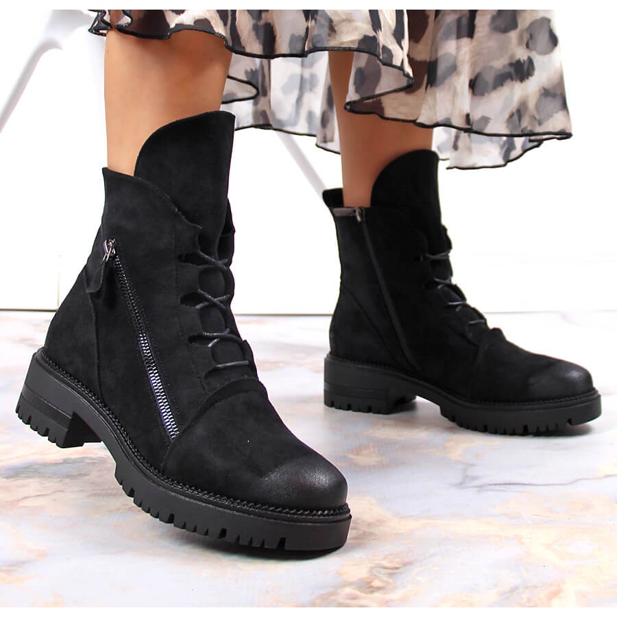 Details: Schwarze Damenstiefel mit Reißverschluss, Potocki