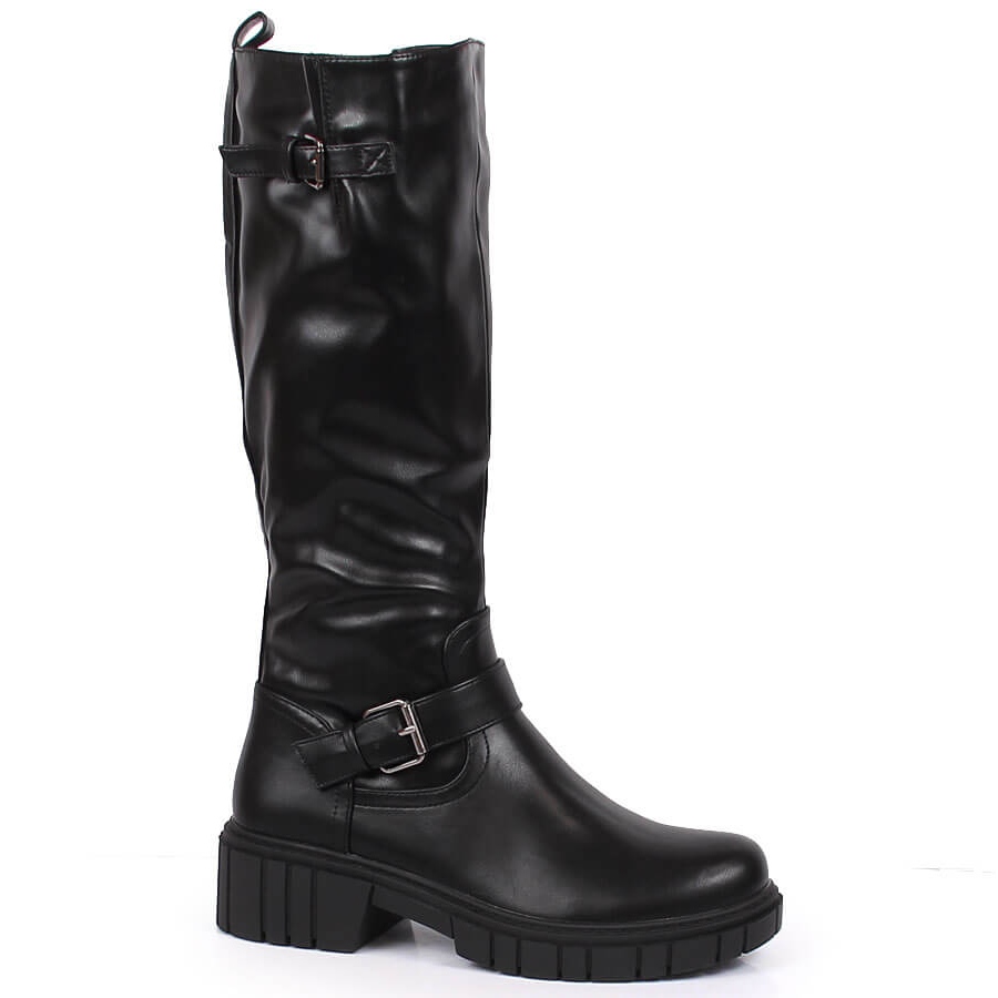 Jezzi Jezzi Schwarze Damenstiefel mit verstellbarer Schnalle Vinceza