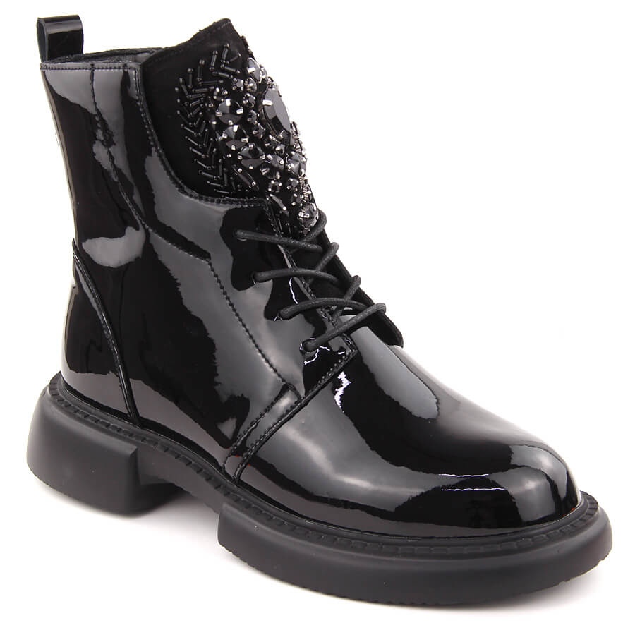 Details: Schwarze Damenstiefeletten aus Lackleder mit Steinen Filippo DBT6568