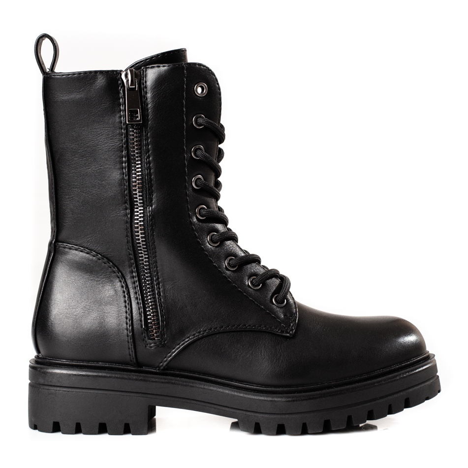 Schwarze Shelovet-Arbeiterstiefel für Damen mit dekorativem Reißverschluss sind ein ideales Angebot für Frauen, die stilvolle und bequeme Schuhe für die Herbst-/Wintersaison suchen. Diese Stiefeletten aus hochwertigem ökologischem Leder sind eine Kombination aus Modernität und klassischem Design. Ihr lässiger, rockiger Stil eignet sich perfekt für Alltagsoutfits und verleiht jedem Outfit Charakter.