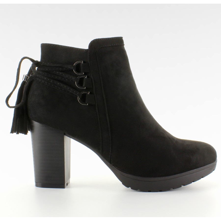 Stylische Stiefeletten aus ökologischem Wildleder, die Komfort mit modischem Finish verbinden. Sie haben eine runde Nase und einen breiten, stabilen Pfosten mit einer Höhe von 8,5 cm, der den ganzen Tag über für Tragekomfort sorgt. Dekorative Schnürungen und dezente Fransen auf der Rückseite verleihen den Schuhen Charakter. Auf der Innenseite befindet sich ein Reißverschluss zum einfachen Anziehen.