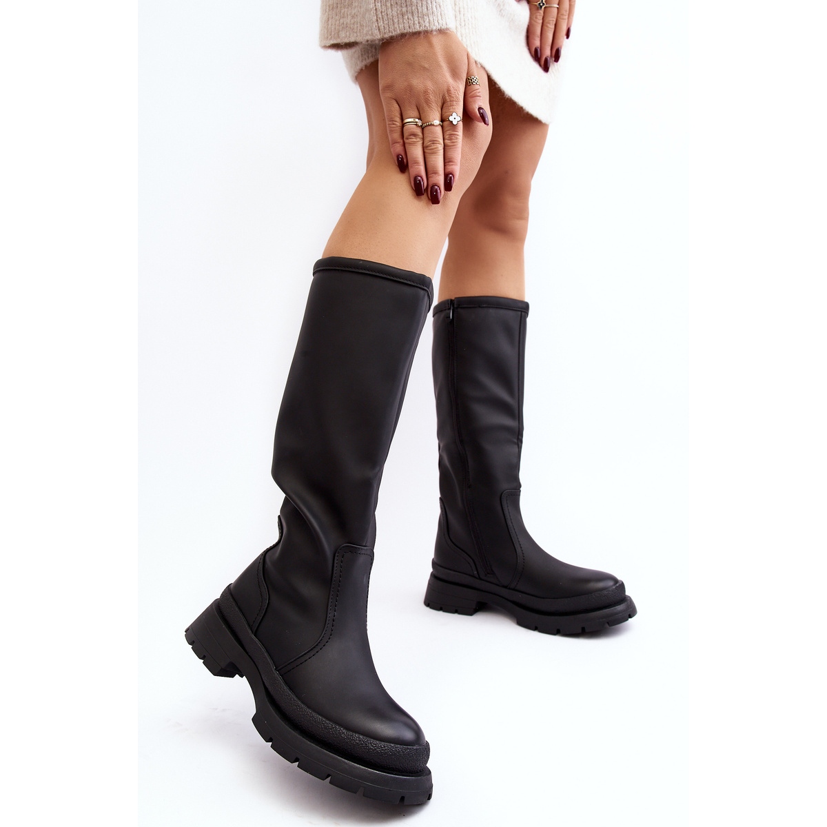 Inna marka Schwarze Desiren isolierte Damenstiefel mit flachem Absatz