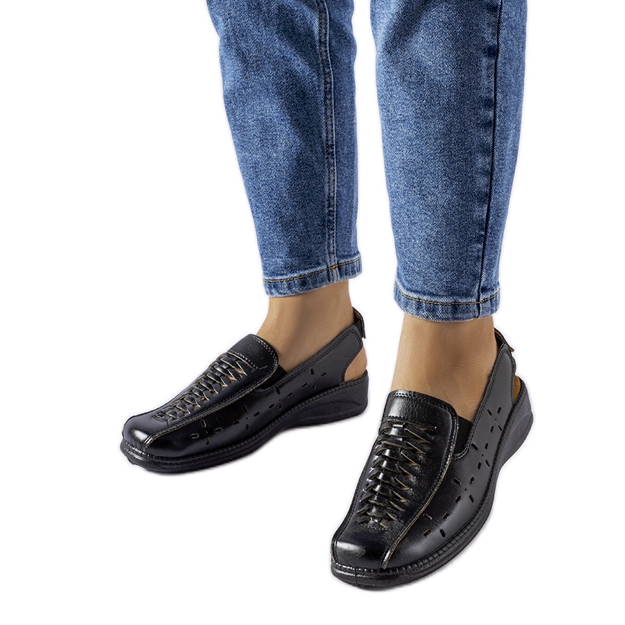 Details: Schwarze durchbrochene Glafi-Sandalen
