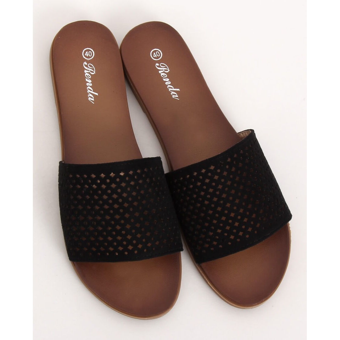 Inna marka Schwarze durchbrochene Hausschuhe 620-63 Schwarz