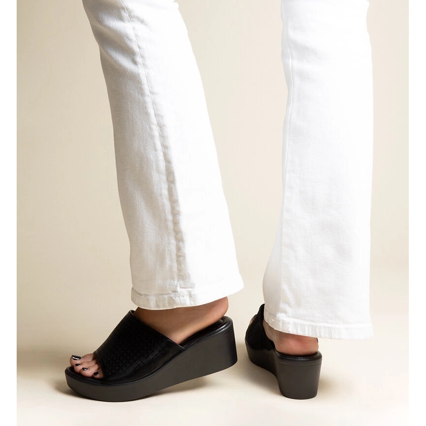 Inna marka Schwarze, durchbrochene Keilpantoffeln aus Garvin-Öko-Leder