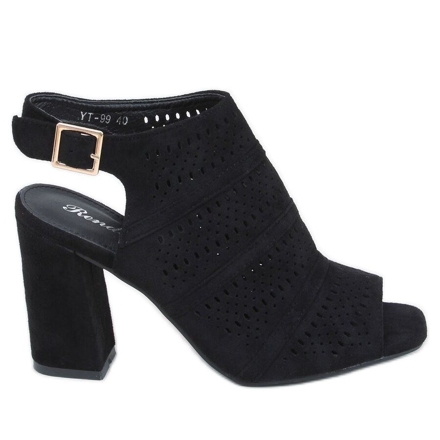 Details: Schwarze, durchbrochene Sandalen mit hohem Absatz YT-99 Black