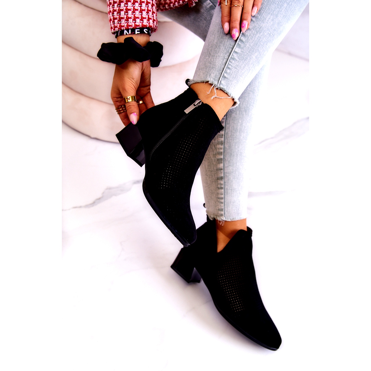Machen Sie sich bereit für die Frühling-Sommer-Saison mit den eleganten, durchbrochenen Vinceza-Stiefeletten aus Wildleder mit Ausschnitt in Schwarz! Diese einzigartigen Schuhe bestehen aus hochwertigem Öko-Wildleder mit einem auffälligen Lochmuster, das ihnen Leichtigkeit und Stil verleiht.