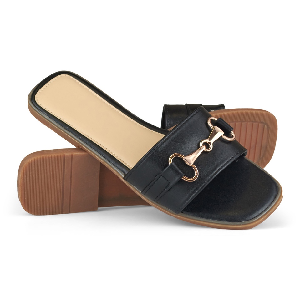 Schwarz -Frauen -Pantoffeln mit einer Schnalle sind eine universelle, elegante Auswahl für die Frühlings-/Sommersaison - komfortabel, stilvoll und leicht zu pflegen, ideal für alltägliche und etwas formellere Stile.