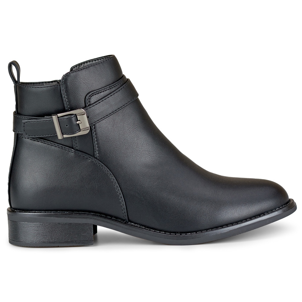 Stilvolle, zeitlose Stiefel aus ökologischem Leder in universeller Schwarz. Das Modell für Knöchel mit einem einfachen, glatten Schnitt mit einer runden Nase und einer flachen Sohle bietet einen eleganten Look mit maximalem Tragenkomfort - perfekt für die Herbst/Winter -Saison.