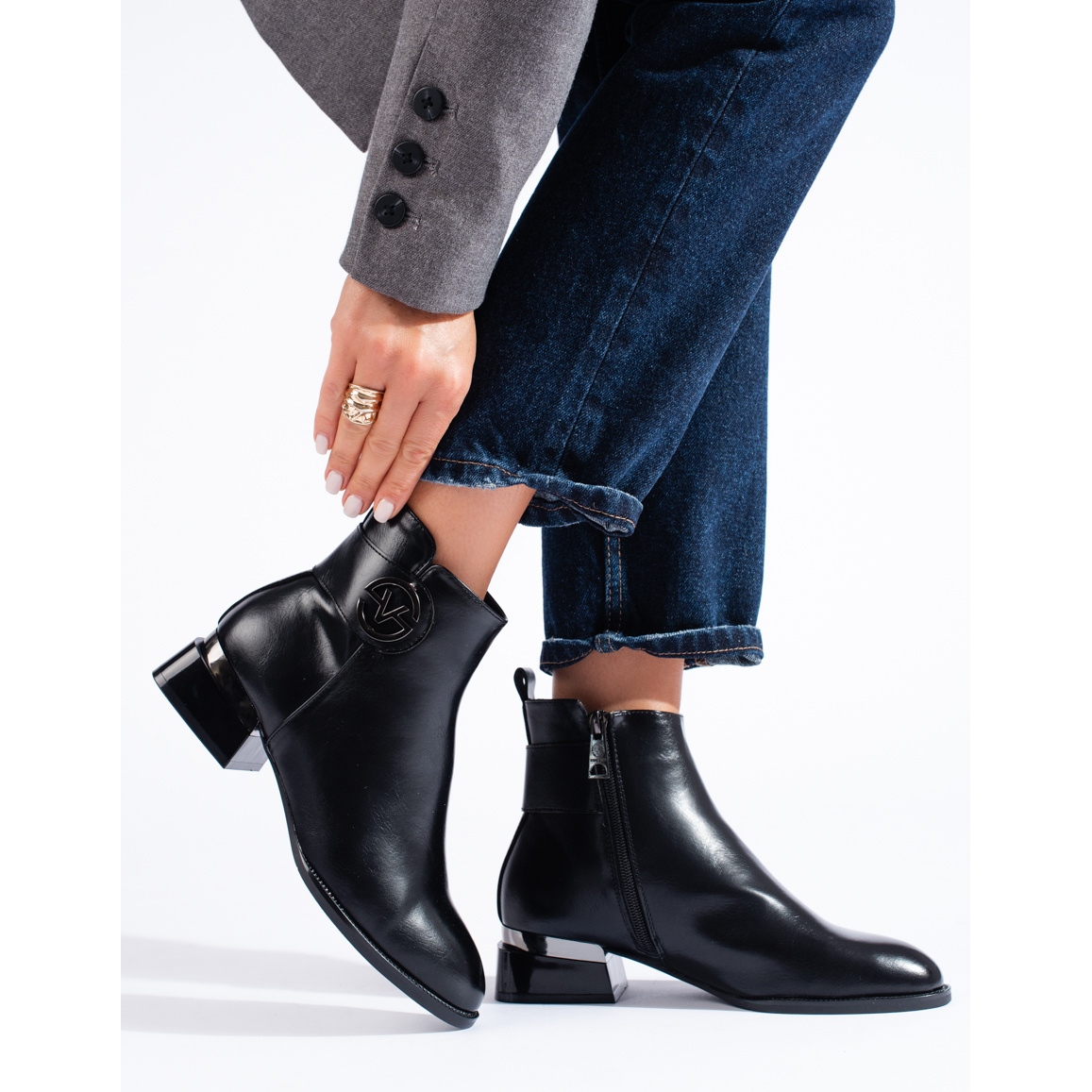 Details: Schwarze elegante flache Stiefel von Vinceza