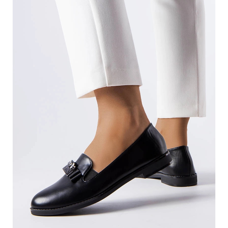 Klassische Slip -up -Slipper in einer eleganten, zeitlosen schwarzen Farbe. Ein glattes ökologisches Leder, das mit einem subtilen Bug mit Zirkonen dekoriert ist, fügt Stil hinzu, ohne die universelle Natur der Schuhe zu stören. Eine flache Sohle und eine abgerundete Nase sorgen täglich Komfort, und eine schmale Linie funktioniert besonders auf schmaleren Füßen.